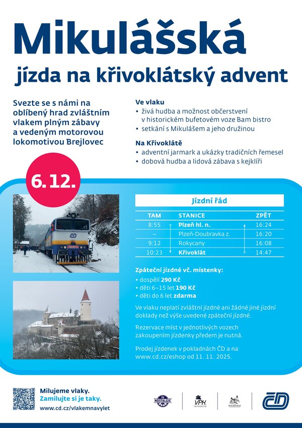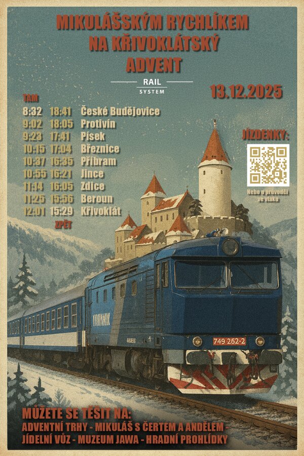 Vydejte se mikulášským vlakem z Plzně na Křivoklát!