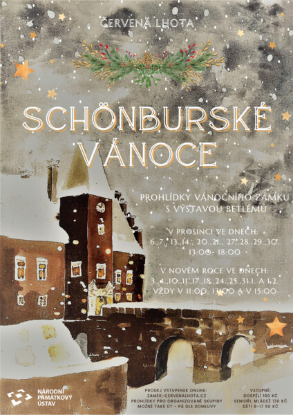 již tradičně se Schönburské Vánoce opět vrací na Červenou Lhotu. V prosinci se zámecká brána opět otevře a Vy budete moci nahlédnout do života posledních majitelů zámku v zimním svátečním období. Těšit se můžete na prohlídku zámku tak, jak vypadal o Vánocích v době, kdy zde bydlela knížecí rodina Schönburg-Hartenstein. Dozvíte se, čemu se v zimním období rodina věnovala, jak prožívali čas Vánoc, co se servírovalo k štědrovečerní večeři nebo co přinesl Ježíšek pod stromeček. Také ale zabrousíme do starých vánočních tradic a jejich původu, takže se každý může něčemu novému přiučit.