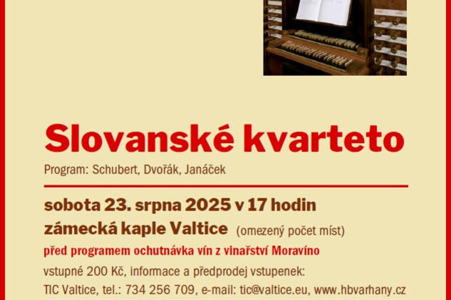 Koncert se koná v sobotu 23. srpna 2025 od 17:00 v kapli zámku Valtice.