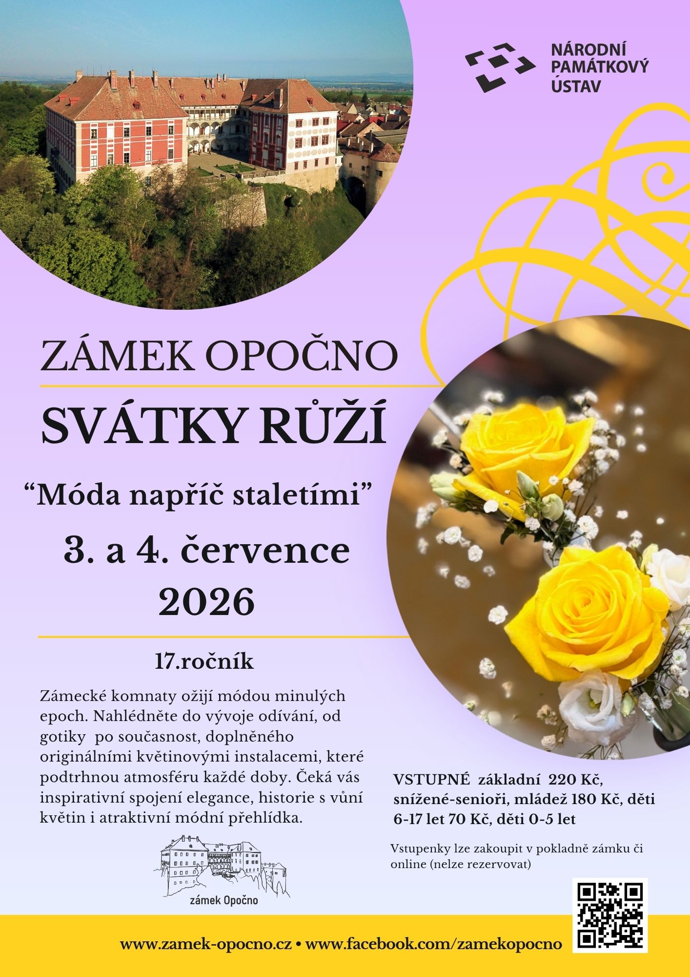 !!! 5. a 6. července 2025 (ne a po) – běžné prohlídky s průvodcem s květinovou výzdobou (v tyto dny je stup do zámku časově vázán)