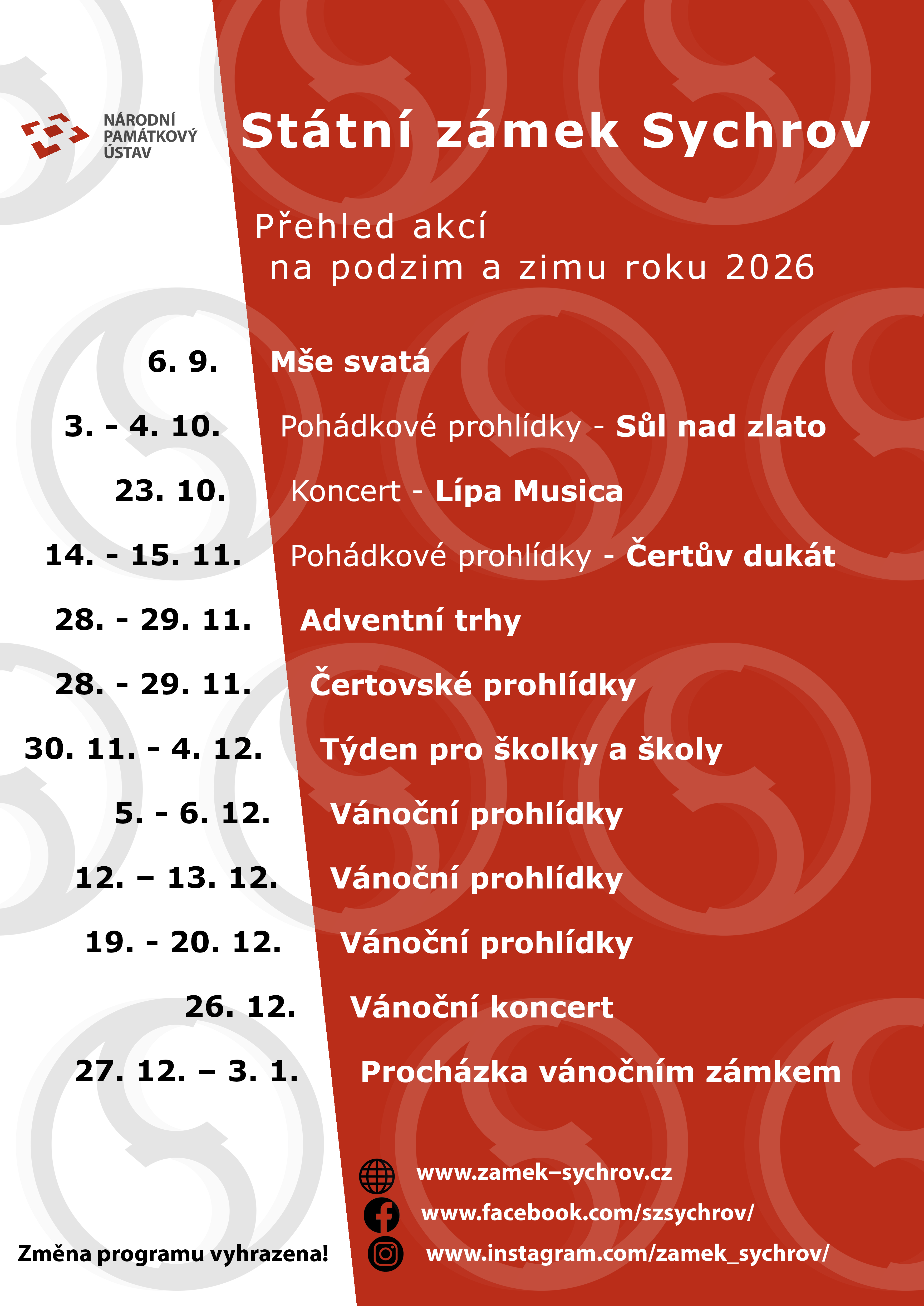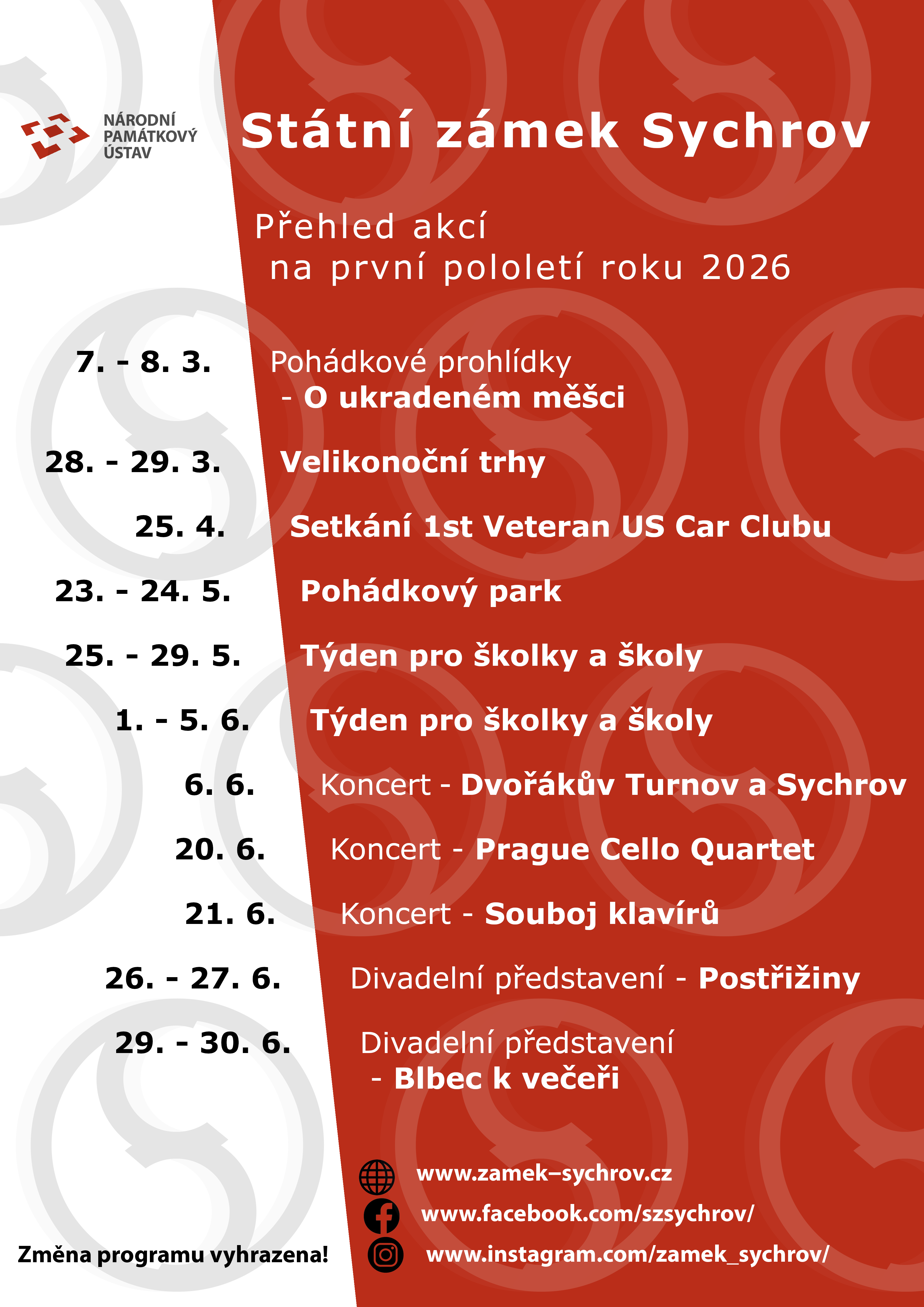 Přehled plánovaných akcí na zámku Sychrově pro rok 2026.